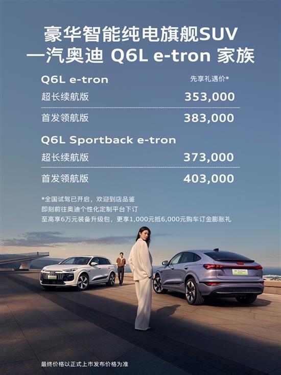 7月26日上午,一汽奥迪Q6L e-tron/Q6L Sportback e-tron正式公布预售价,普通版与轿跑版分别各推出2款车型,先享礼遇价区间为35.30-40.30万元。