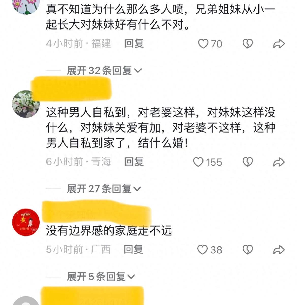不过,也有网友认为,哥哥照顾妹妹很正常,这是亲情,血溶于水的亲情。就算夫妻感情,也无法和这种感情比拼。