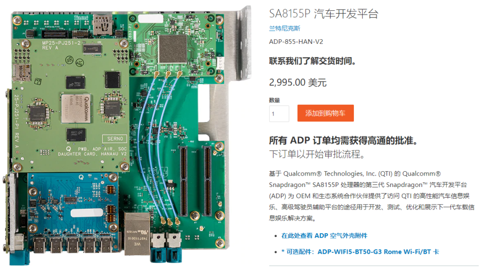 SA8155P汽车开发平台的在2022年的售价为2995美元,折合人民币价格在2万元左右。