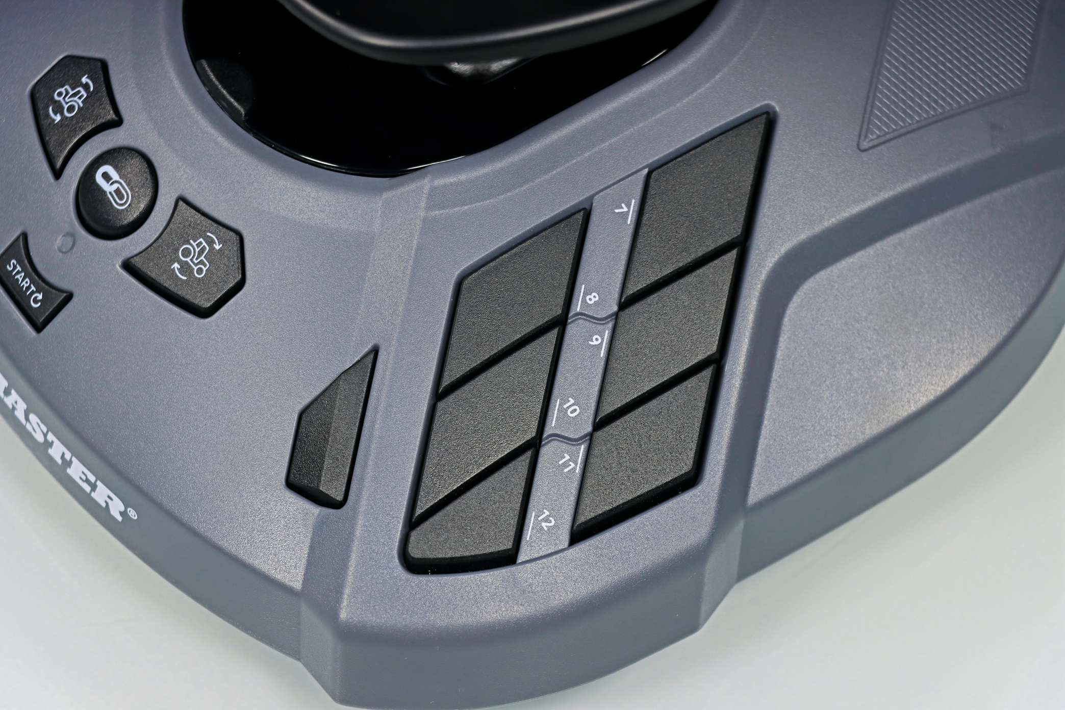 ▲ 图马思特 SimTask-FarmStick 摇杆底座与摇杆上都有多功能按钮,可以作为确认键、对话键、开启设置键等功能。底座上的 “2” 号按钮可以开启 / 关闭农用机的照明灯,左右两侧的小按钮可以开启转向灯,让你做个文明守法的好公民,通过这一切,可以让游戏的沉浸感更强。