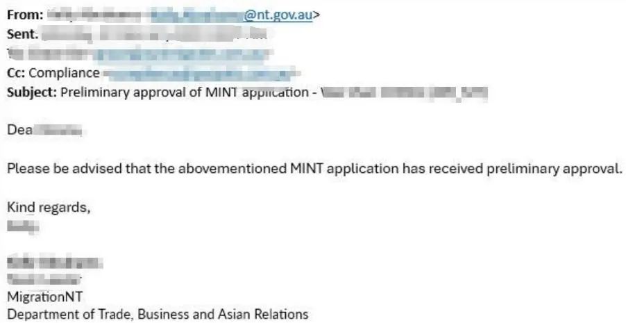 另外需要注意的是,海外申请人在申请MINT项目前的5年内,不得持有澳洲学生签证或其他长期签证;不得有直系亲属居住在北领地以外的州;不得与其他州有联系,否则只能申请491提名。