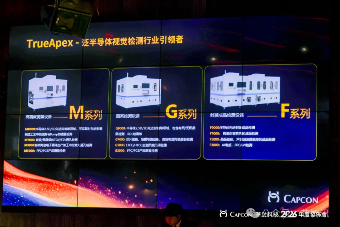 作为公司生态布局的重要举措,华封科技于2025年启动“乐高计划”,通过内部孵化与外部整合丰富产品矩阵,禾思科技作为该计划首个案例,在本次发布会上交出亮眼答卷。禾思科技已正式加入华封集团,经过一年深度整合,此次发布TrueApex系列半导体视觉检测产品,涵盖三大核心系列,实现半导体检测领域的全场景覆盖。其中,M系列为高精度量检测设备,可满足晶圆级2.5D/3D检测、板级/晶圆级TGV/TSV通孔检测等需求;G系列为图形图案检测设备,覆盖有图/无图晶圆、芯片载板等检测场景;F系列为封装成品检测设备,主要面向光通信、声表滤波器等领域的管壳检测。三大系列产品的发布,标志着华封科技与禾思科技在半导体检测领域的技术协同迈入新阶段,进一步完善了公司在先进封装领域的产品布局。