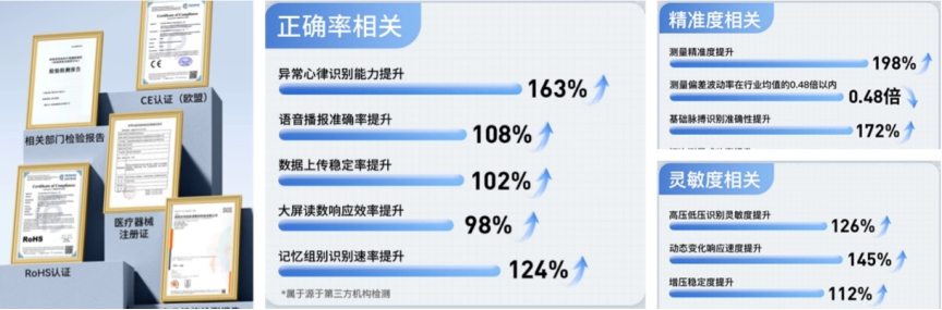 町石多年专注血压计精准度,自研的三重校准算法,搭载多重链路算法让测量标准更加精确,同时5年抗衰减认证确保长期使用依然精准,很多品牌做不到那么高的标准。