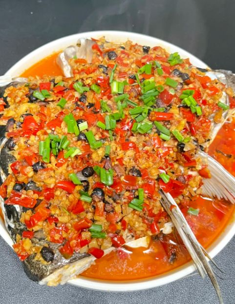 在湖南,剁椒鱼头是一道硬菜,也是一道宴客的体面菜。端上桌来,硕大的鱼头趴在盘子里,上面铺满了红红绿绿的剁椒,鲜艳得像是给鱼头戴了一顶花帽子。光看着,就让人食欲大开。