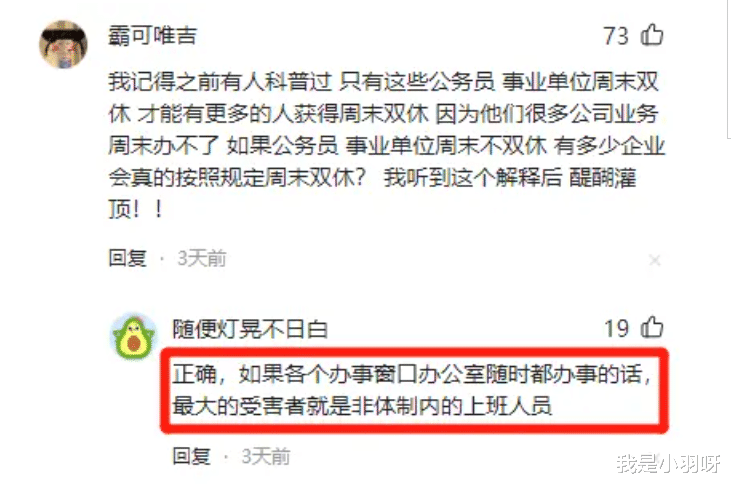 有个网友喊 “公务员该周末上班”,评论区是很热闹。