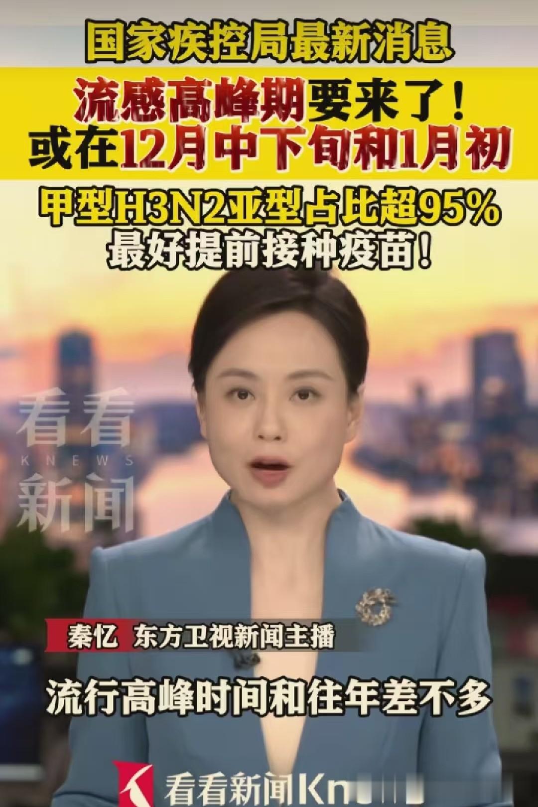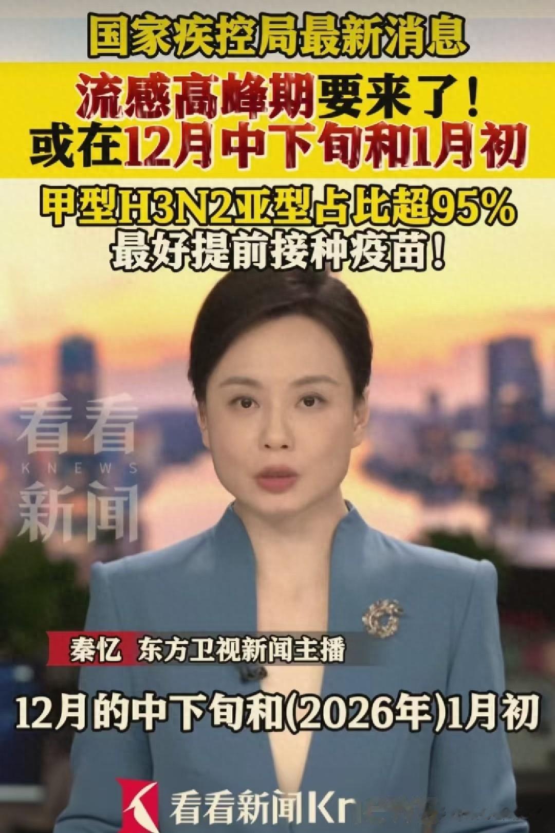 天气转冷,流感也悄然逼近。国家疾控局最新通报显示:今年流感高峰大概率在12月中下旬至2026年1月初来临,其中甲型H3N2亚型占比超过95%,成了当之无愧的“主力军”。
