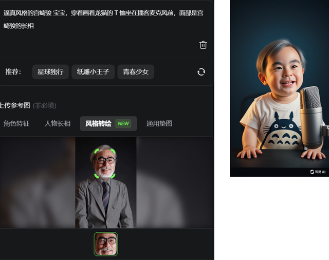 还可调用竞品的视频大模型说到这,我们也忍不住亲自上手整活儿——这次,玩了把穿越 「Baby 宫崎骏专访老年宫崎骏」。两代「宫崎骏」同框对谈,讨论那部帮他拿下第二座奥斯卡奖杯的《苍鹭与少年》。