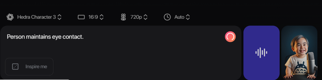 图片、音频都准备好后,接下来就是见证奇迹的时刻——直接把素材丢进 Hedra,生成完整视频!除了 Hedra 自家的 Character-3,你还能调用别家的模型,比如 Veo 2、Kling 等。你可以写一些提示词(prompt),控制主持人手势、眼神、语气变化,让视频表现力更上一层楼。