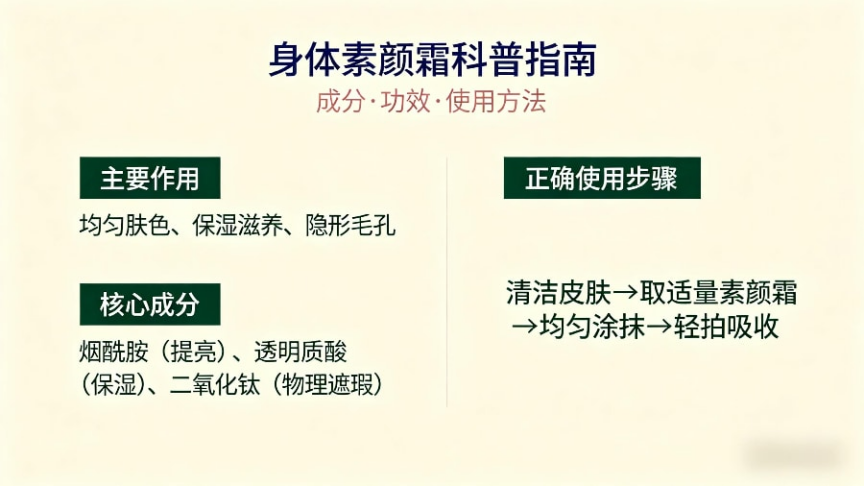 明白为什么需要身体素颜霜后,结合我自己的实测和踩坑经验,总结了6个实用选购技巧,帮大家快速避坑,顺便解答哪款身体素颜霜最好用不流白汤的问题。