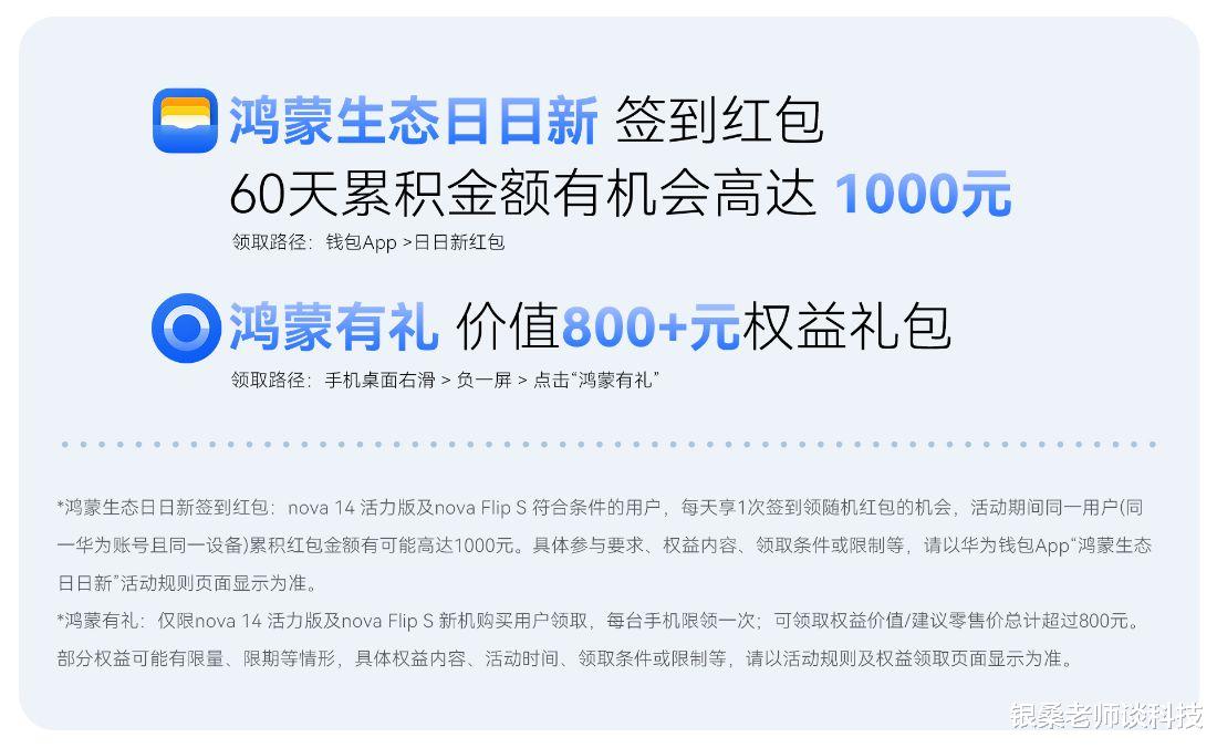 10月24日正式开售,售价2199元起。首销期间,相关的购机权益更是让“值”感最大化。2025年10月24日至12月31日,用户激活后在“华为钱包-日日新红包”首次签到,即有机会领取最高99.9元的大额红包,并且每日签到可领随机红包,最高连领60天,累计红包金额有机会高达1000元!同时,用户还可专享价值超800元的“鸿蒙有礼”权益,包括Petal One畅享套餐(3个月50GB云空间、视频及音乐会员等)、华为阅读会员等多重VIP权益。在不同地区,更有15%的国补额度可享。