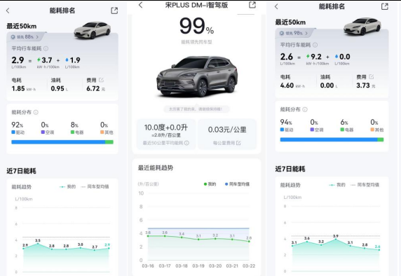对于必须用油的场景比亚迪也给出了答案,OTA后百公里2.6L油耗,加油也不心疼。即便跑长途需要烧油,比亚迪插混同样底气十足。第五代DM技术通过OTA升级,百公里亏电油耗已优化至2.6L,再创全球插混油耗新低。这意味着,即使在亏电状态下行驶,每公里油费成本也仅0.23元左右。