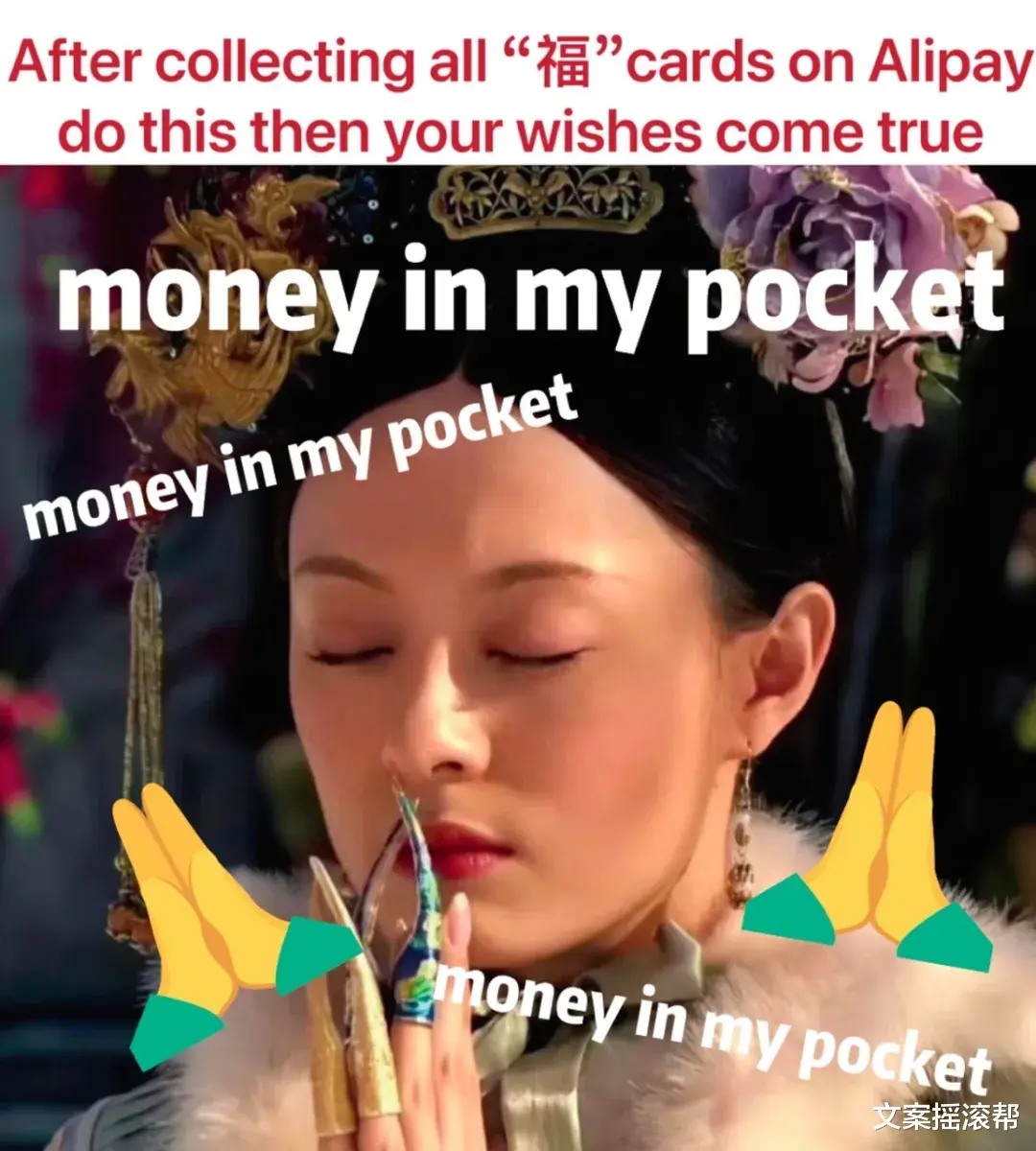 限于篇幅,28套就不一一介绍了,总之就是一句话,记得跟老外说,集福的过程相当于“chinese灭霸,you konw,5 Infinity Blessing then bomb!you get money!”他就能明白,要是他还问为啥有28套,就说我们有28个「集福宇宙」。