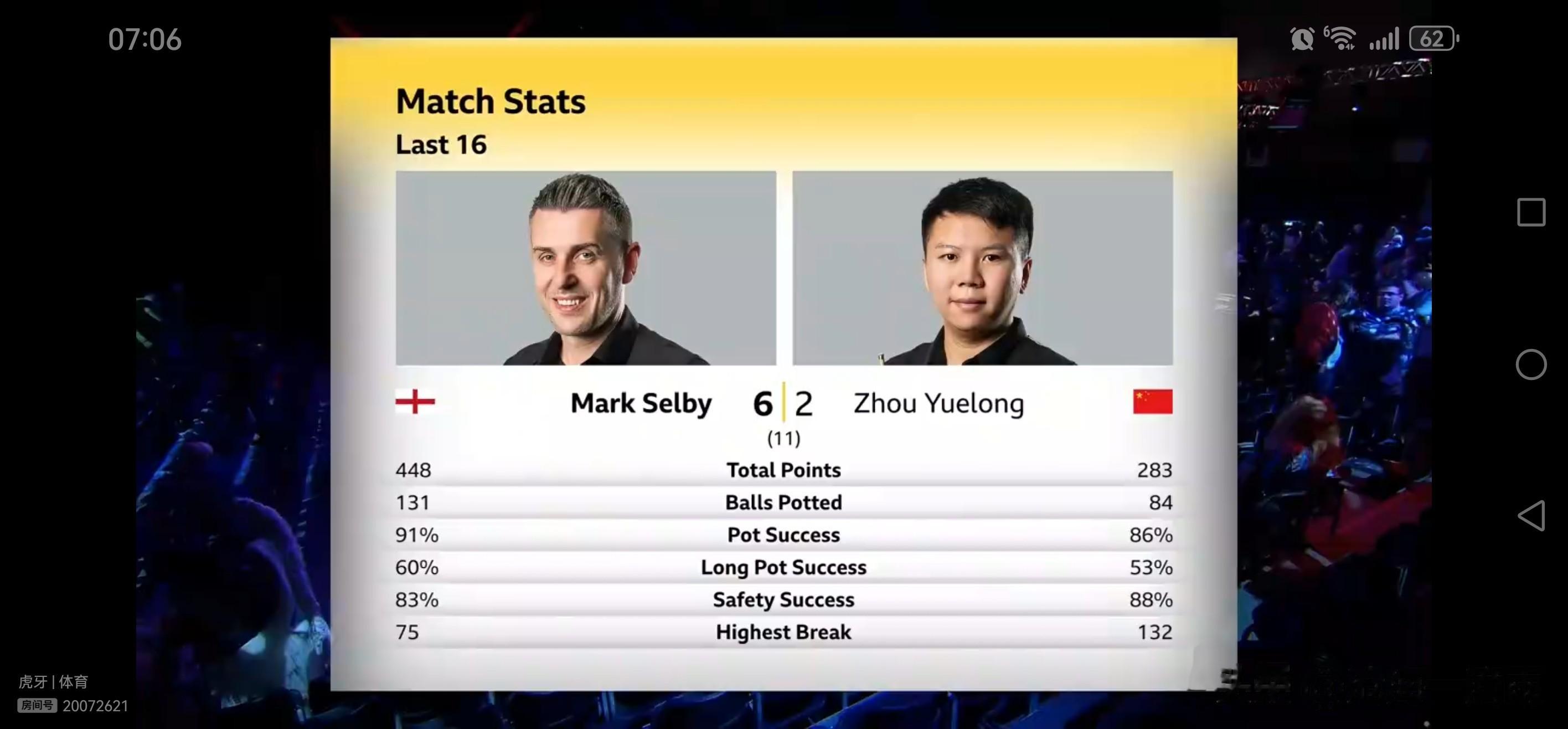 第7局小龙长台准进仅得20分,塞尔比一杆75分赢得赛点5-2
