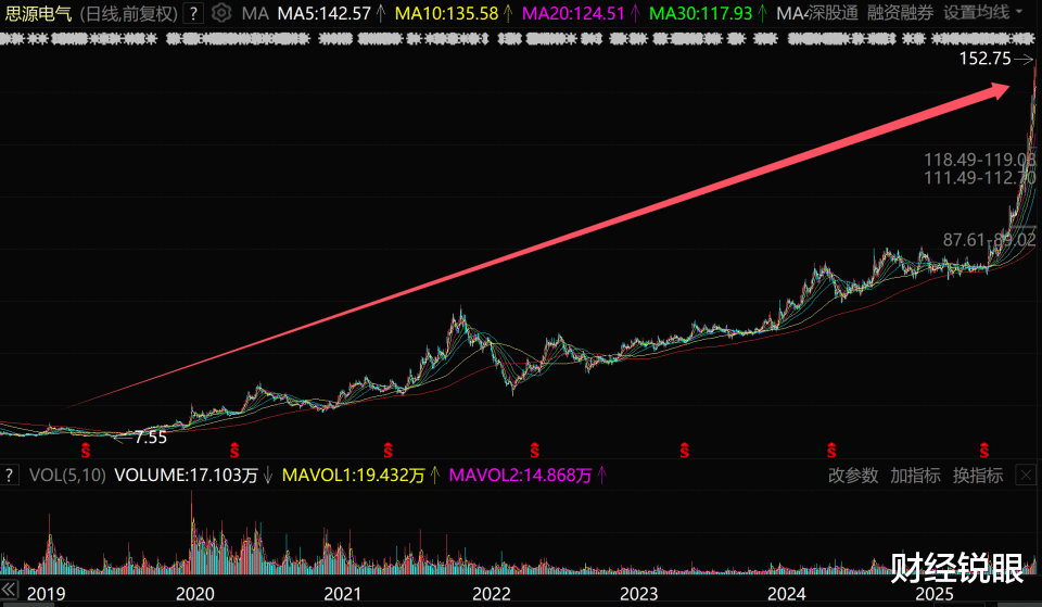 2004年上市的思源电气,上市以来股价长期稳步上涨,2019年之后更是加速上涨,从2019年年中7.55元的低点到今天盘中最高的152.75元,6年多时间涨幅高达近20倍,创造了又一个A股财富神话。