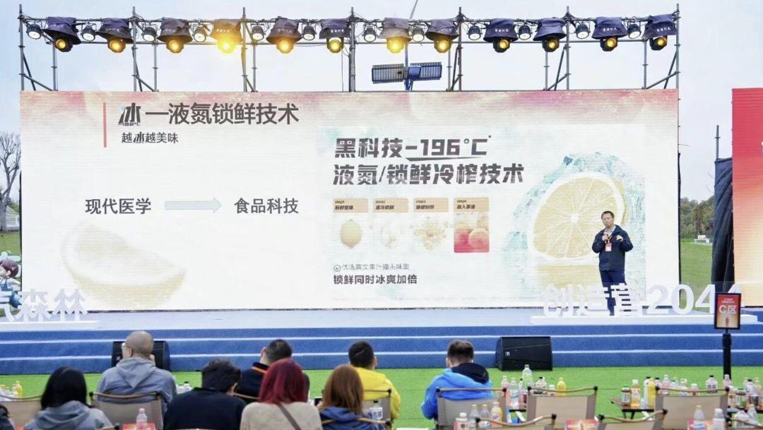 如果说咸宁创新院是“练兵的战场”,那么元气森林研究院则是提供“精良装备”的后方。在今年的创造营上,研究院首次系统讲述了他们在非人工色素稳定应用、-196℃液氮锁鲜、鲜山楂慢发酵、气泡释放动态调节四大方向的核心技术积累。