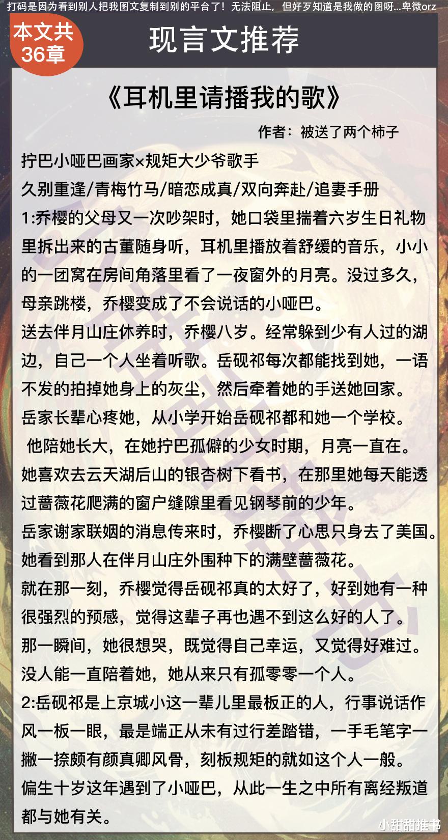 第二本《耳机里请播我的歌》作者:被送了两个柿子