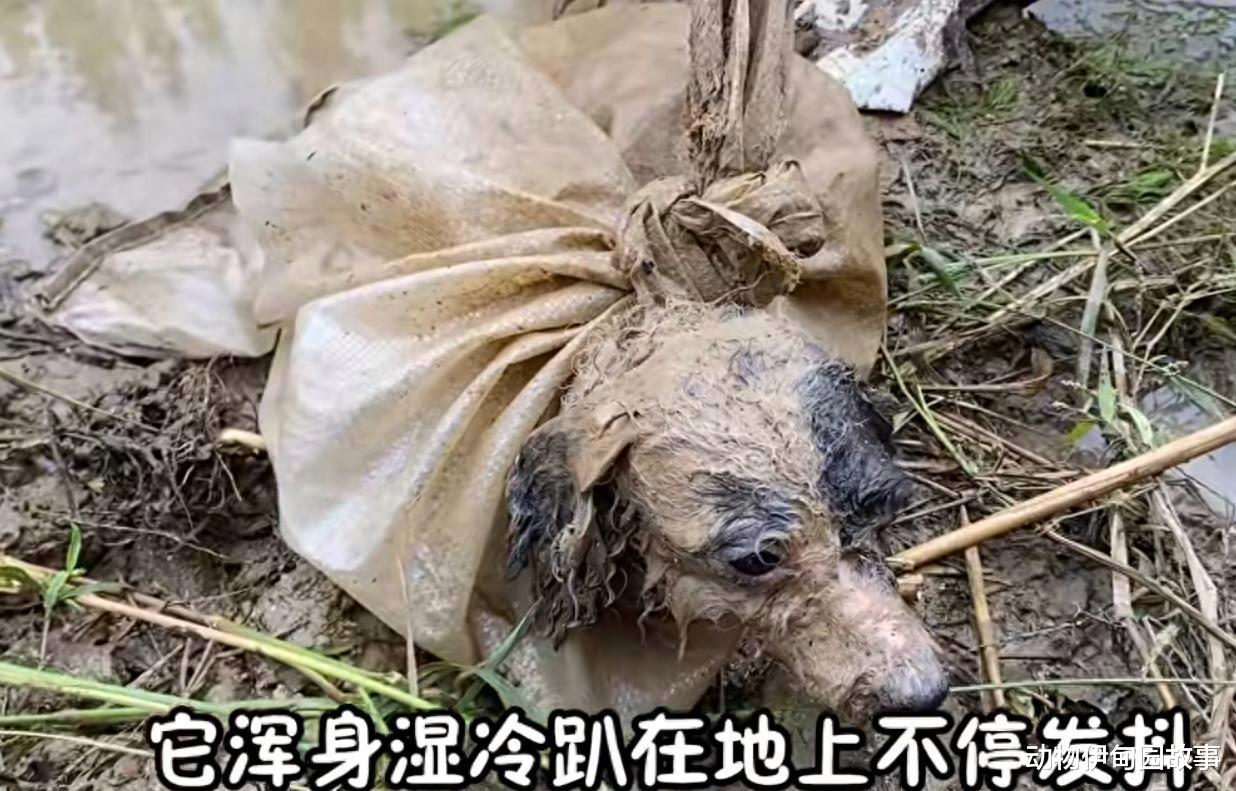 不知道是谁这么狠心,这么无情,这么丧良心,居然将一只活生生的狗狗,给装进了麻袋,丢进了河里!