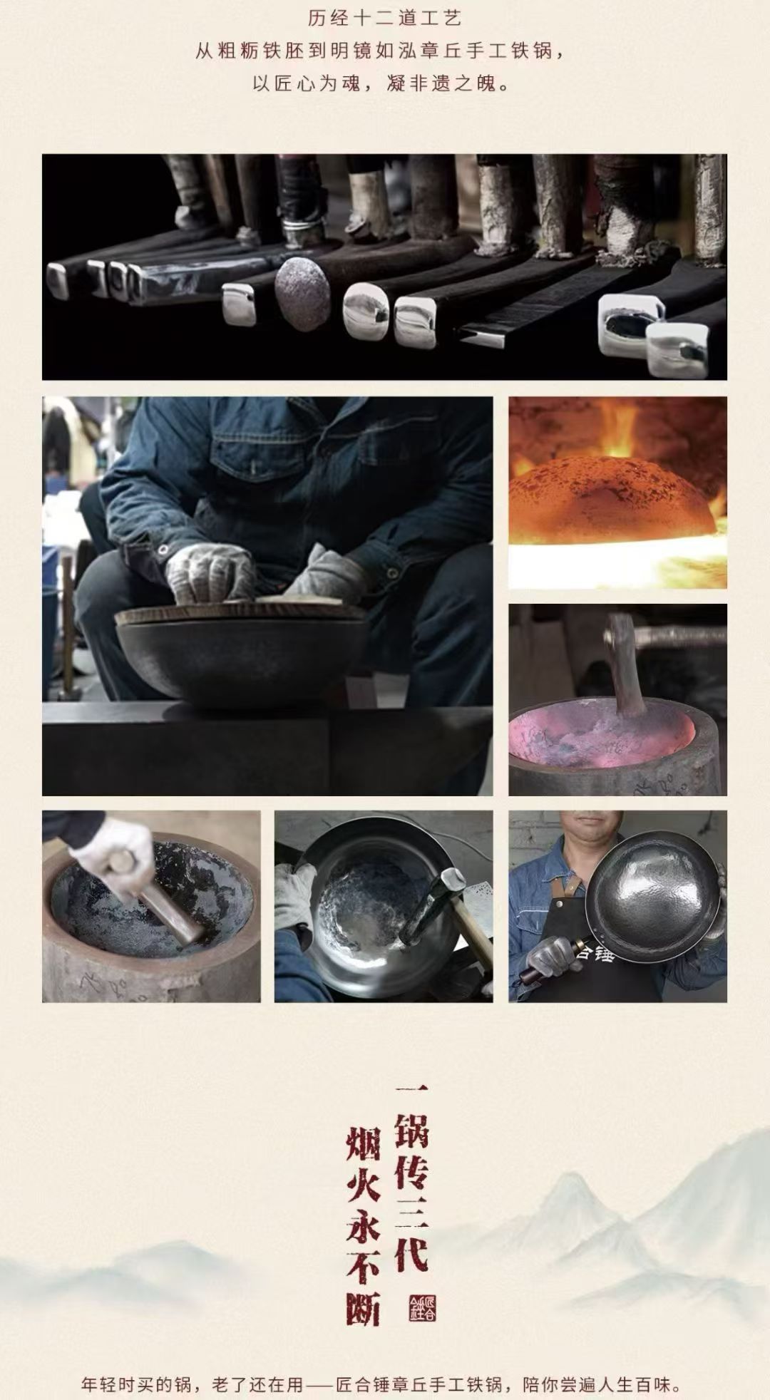 匠合锤的珍贵,藏在“慢工出细活”的匠心里。不同于流水线量产的锅具,每一口匠合锤都由老匠人手工锻打而成。从挑选SPCC精熟铁材料,到反复锤击去除杂质,再到精细校准锅型、打磨锅身,12道工序层层把关,没有丝毫将就。锤痕交错的锅身,是匠人的心血印记;厚实均匀的锅壁,能锁住热量、导热迅猛,炒出的菜自带浓郁锅气,就连焖饭都比普通锅多一分香甜。
