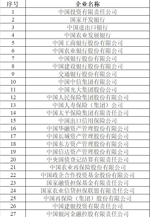 金融类央企,是由财政部出资组建的27家央企。