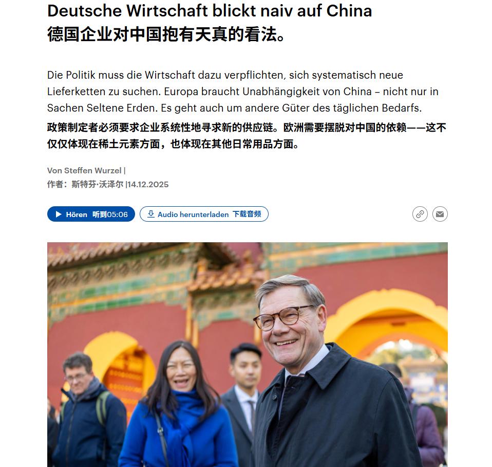 在这些手握笔杆子的媒体人眼里,什么外交失利,那都是表象,真正的病根儿在于德国商界这帮人“脑子坏掉了”。