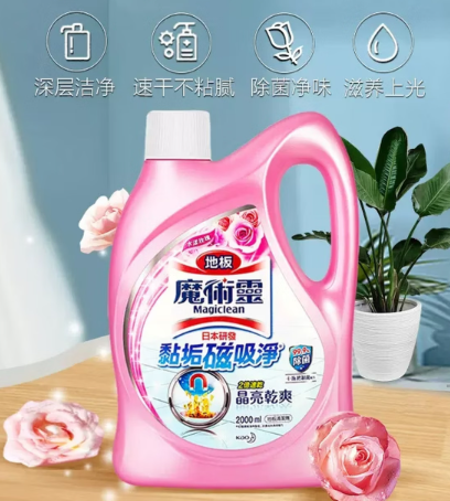 核心优势:网红爆款,4000 + 口碑指数,拖地花露水系列兼具清洁、除菌、祛味三重功效。成分安全无毒,对地板无腐蚀,性价比突出。