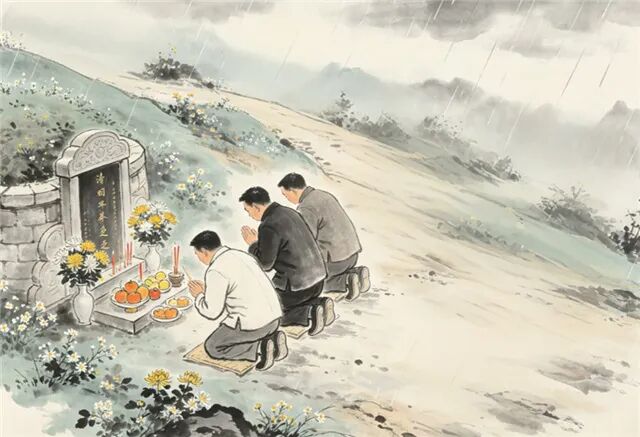 扫墓祭祖,是为了回答“我们从哪里来”。烧一串纸钱,是穿越时空的对话;添一捧新土,是心底思念的加厚。碑前的上香叩首,献花揖拜,不只是走形式,更是一场心灵的靠岸。我们始终相信,那些离去的亲人并没有真正消失,他们只是换了一种方式,安静地活在我们的记忆里。那矮矮的坟,挡住了拥抱,却挡不住思念;那厚厚的土,隔开了朝夕相处,却隔不断血脉相连。我们在墓前轻声禀告,倾诉牵挂,把积攒了太多深情的泪水,合着春雨洒在墓前;把平日来不及说出口的思念,都交给了这片安静的土地。