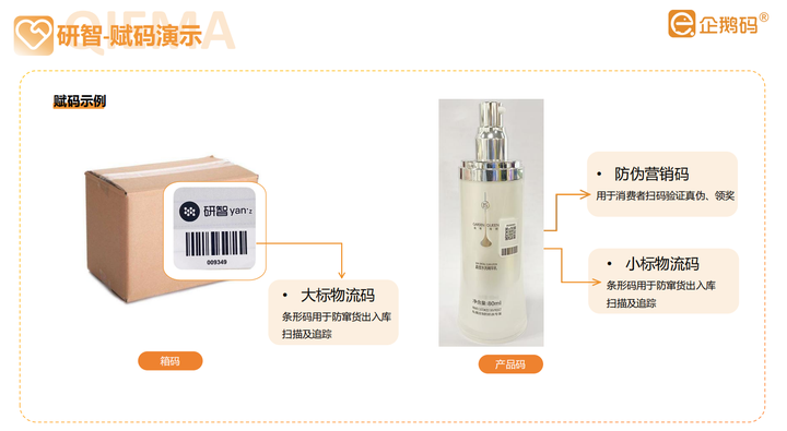 生产端:赋码与包材制作同步完成,避免后期贴标对产线效率的影响,还能通过包材授权管控防止超额生产;