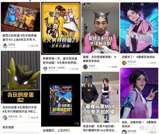 大量新用户从移动端涌入,也带动了IP相关内容讨论的热度大幅提升。经常可以在各大社交平台上看到有关《无畏契约手游》的各种讨论,社区中有关cosplay和二创的内容也如雨后春笋般大量涌现。仅抖音平台,#无畏契约手游话题的播放量已经高达66.4亿,相关攻略、二创内容都获得了极高的热度。而在游戏文化与社交因素的驱动下,玩家社区生态中也催生了诸如“随地大小瓦”“瓦手DD”等具有鲜明手游特色生态梗文化。