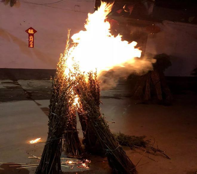 正月十六,点燃芝麻秸秆,象征“芝麻开花节节高”