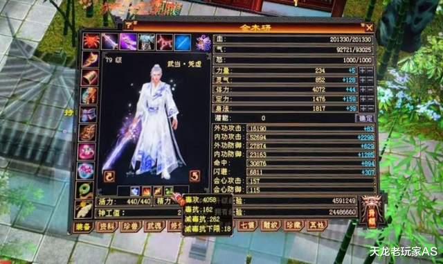 血量20万,蓝量9.3万,内功攻击5.2万,命中3万,闪避6811,会心攻击157,会心防御115,主毒攻击4058!