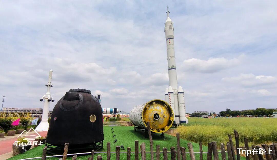 03田园里的航天梦在御史河北岸的蔺草田中,一座精致的航天空间站模型与20米高的航天器模型巍然矗立,与周边的田园风光相映成趣。这就是茂新村的核心遛娃打卡地:太空农业体验中心,将航天科技与乡野农田巧妙融合,让孩子们在田园间就能“触摸宇宙”。
