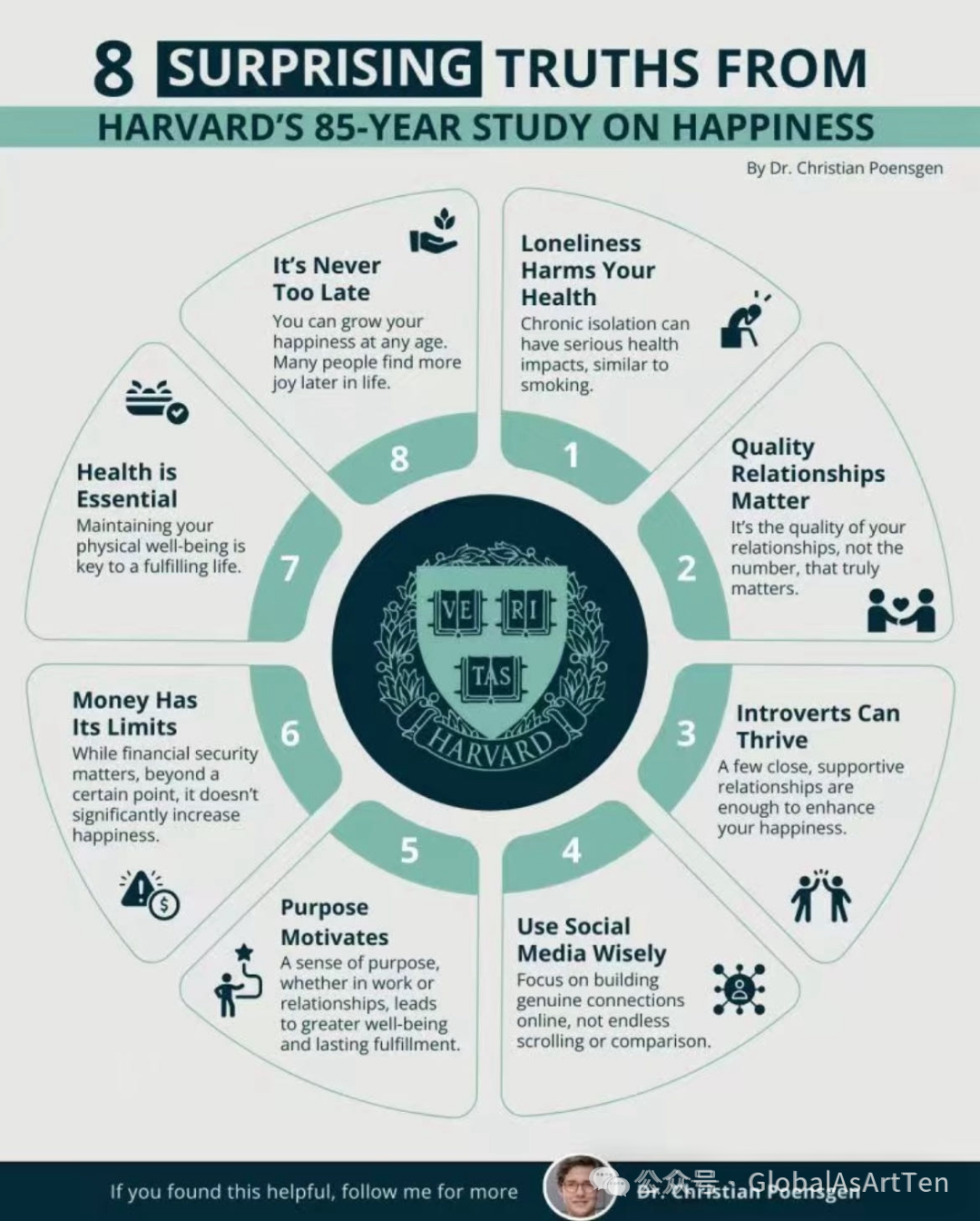 从哈佛的本科生到波士顿贫民区的男孩,从风华正茂的少年到白发苍苍的老人,这项研究涵盖了不同背景、不同阶层的人群,只为找到那个关于幸福的终极答案。