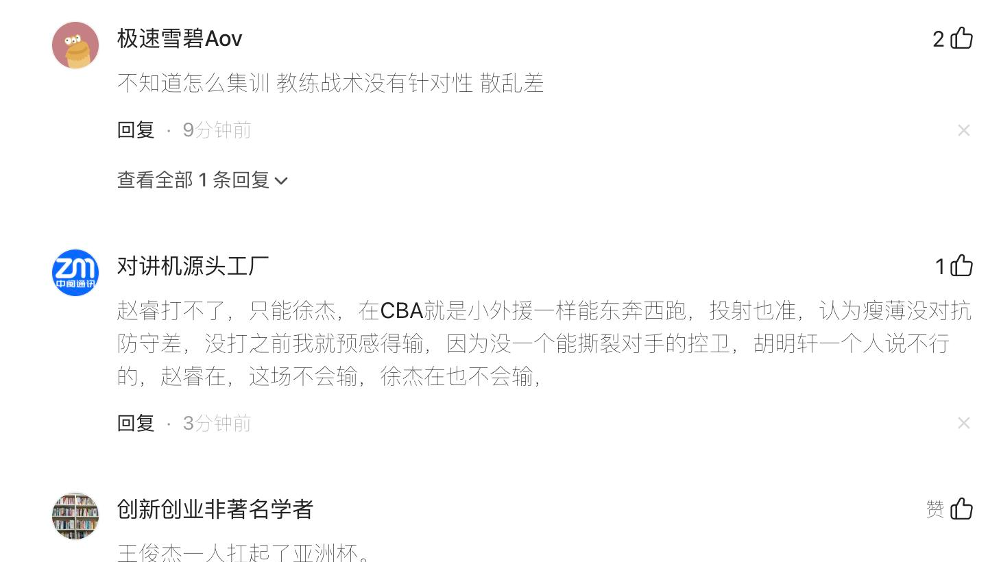 亚预赛中国男篮与韩国队的比赛出现了大冷门!中国男篮全场被韩国队压制,进攻打不开,防守拉胯,最后以76-80惜败韩国队。本次比赛中国男篮打的真的是惨不忍睹了,全队人完全不在线,只是在最后打了2分钟好球,被张镇麟把比分追到了3分,最后的三分球绝平可惜没进。这一场比赛中国男篮打的是非常匪夷所思,主教练郭士强被炮轰,连解说的杨毅和张云松都看不过眼了,防守实在太差,被对方的李贤重狂投三分球。