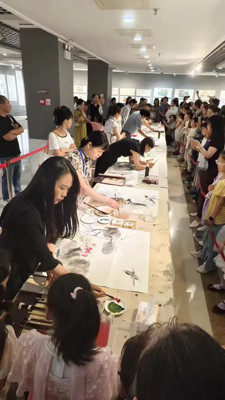 2024年6月1日,长安汉唐书画院受陕西省“新少年.美育杯”书画大赛组委会之邀,老师们在西安亮宝楼博物馆为参赛学生现场示范作品。