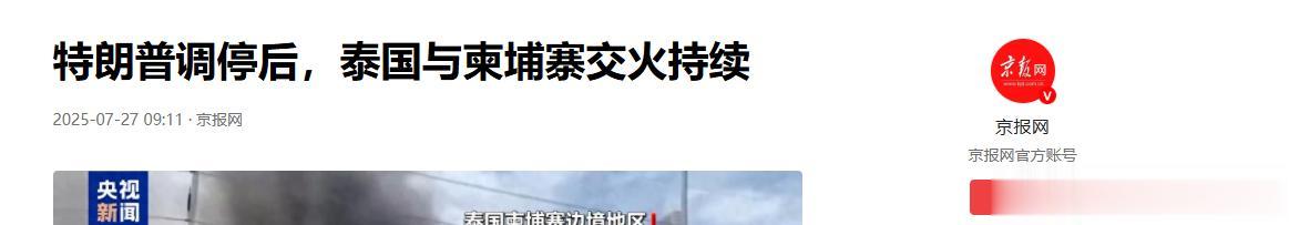 参考资料:京报网 - 2025-07-27 :特朗普调停后,泰国与柬埔寨交火持续