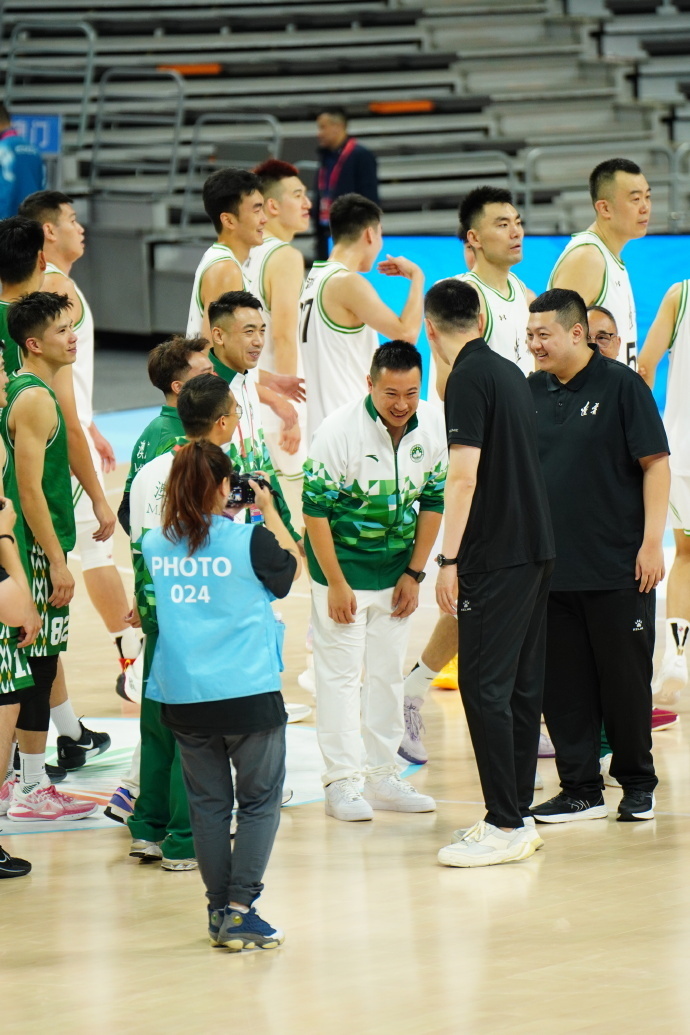 不过,竞技体育的残酷与赛场下的人情味,在终场哨响的那一刻形成了奇妙的对比。比赛的火药味尚未散尽,澳门队主教练王景龙却主动找到了杨鸣,用近乎谦卑的语气请求:“谢谢,我们一起拍个照片,谢谢谢谢”。杨鸣也爽快回应,立刻回头高喊“继伟继伟继伟”,召集队员们完成这张大合照。澳门队的球员更是化身小迷弟,有球员紧紧抱着赵继伟,这一幕或许就是“大湾区全运会”意义的体现。场上是拼尽全力的对手,场下是互相尊敬的同仁。辽宁队在赛后展现了格局。