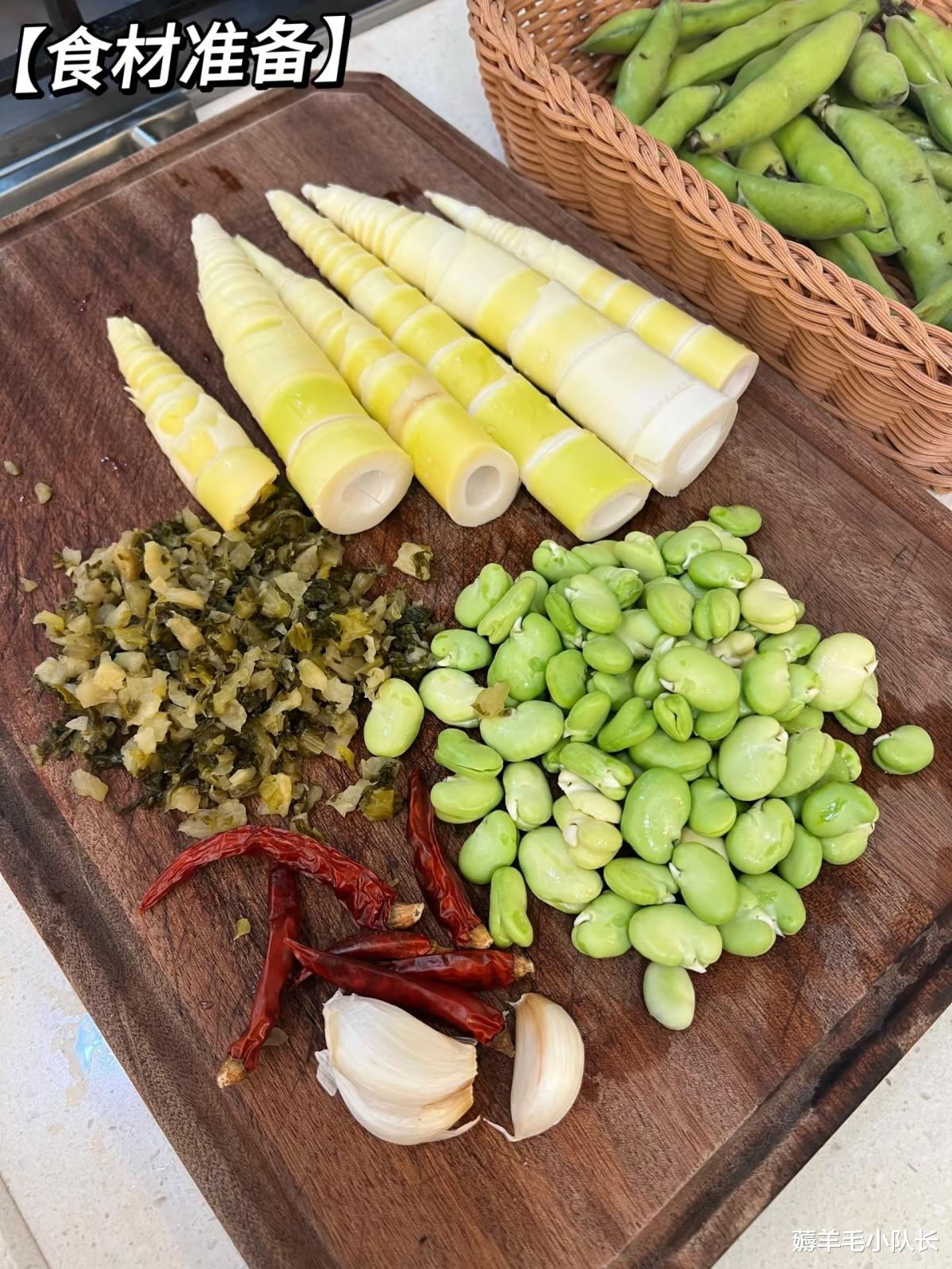 春笋:蚕豆,酸菜,蒜、辣椒。