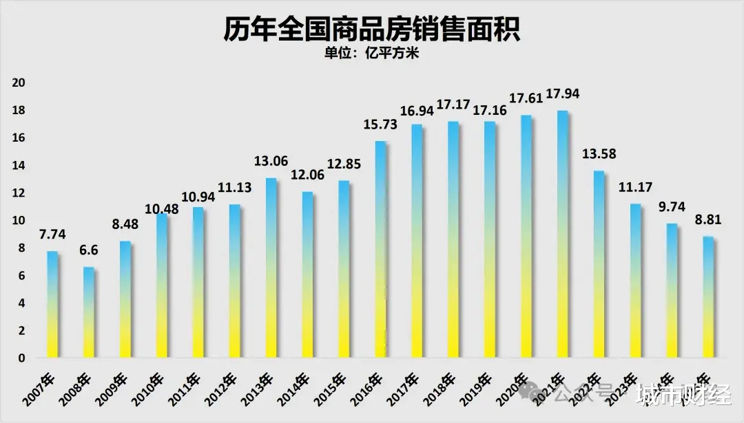 2025全年商品房成交数据跌破“双9”,进入“双8”,也即商品房销售额跌破9万亿,商品房销售面积跌破9亿平方米。