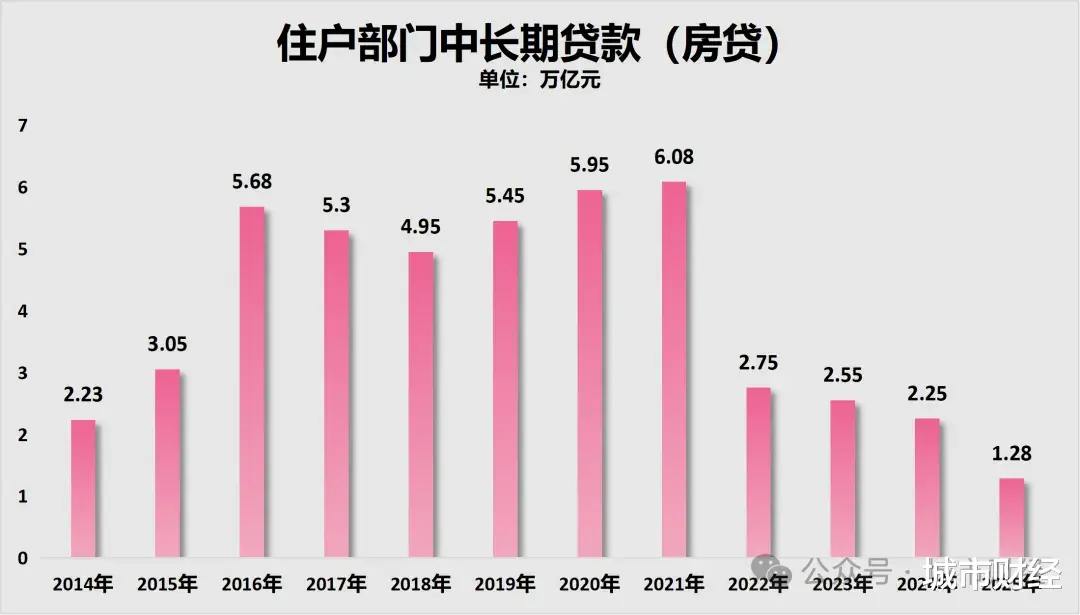 可以看到,短期贷款不仅没有增加,反而在减少。而反映房贷的中长期贷款仅增加1.28万亿,相较于2024年的2.25万亿,又出现了大跳水。