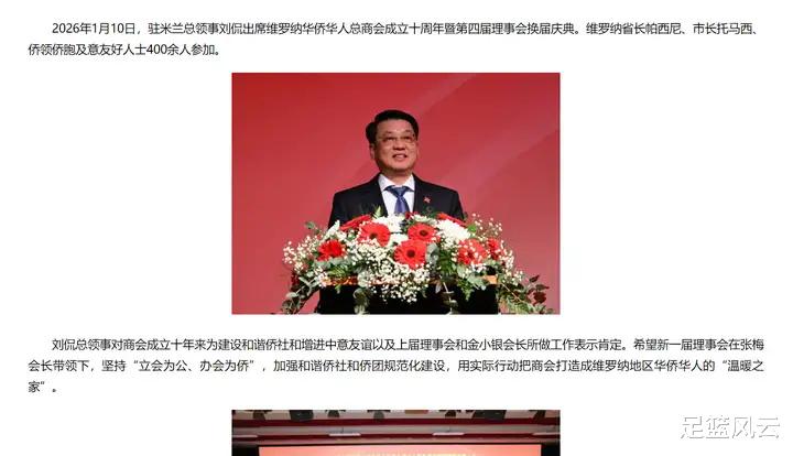 2026年1月,外交部也是发布新闻,谈到了意大利维罗纳这边和这边的友谊,这里面托马西是起到了非常关键的作用。