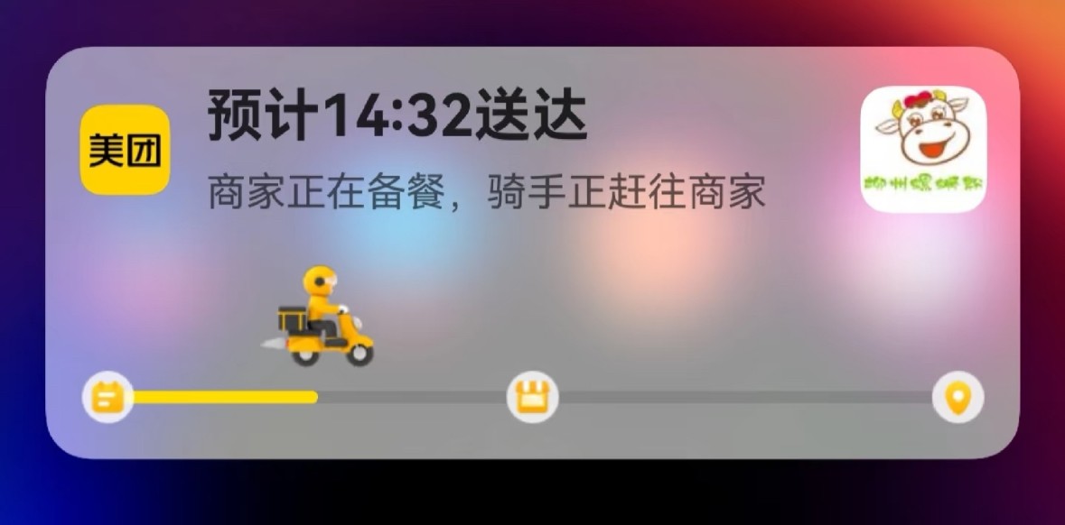 美团上点了一直想吃的酸菜鱼,在奈雪点单元服务点了奶茶,下单用券,美滋滋地省了一笔。不得不说,鸿蒙版美团的“实况窗”体验太贴心了,点完外卖也不用老惦记着解锁手机看进度了。商家出没出餐,外卖小哥到哪了、这趟单车骑了多久等等,这些关键信息在锁屏、通知栏就能一目了然,不用再反复解锁手机、点开App查看了,省时省力。