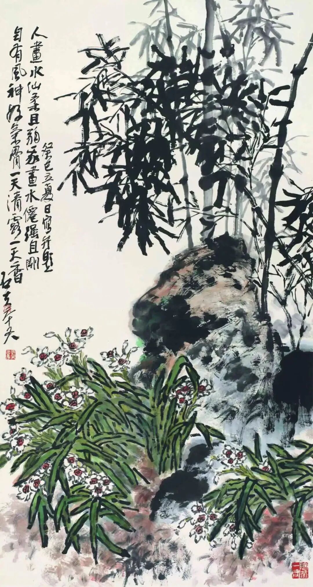 先生之艺,最可贵者,在以笔墨铸精神,以花鸟彰气象。其画不尚雕琢,主张放笔直取,以势贯气,注重画面整体之线面结构,以笔墨的丰富表现力沟通形与神、具象与抽象,于挥洒间见胸襟,于笔墨中藏修养。他笔下的大写意花鸟,不仅是自然物象的再现,更是民族风骨的写照,是中国文化精神的彰显,淋漓奔放中见朴厚,磅礴大气中藏坚贞,纯纯正正,尽是中国气派。观其作,可品笔墨之韵,可感诗情之趣,可悟画家之胸怀,可彰民族之精神,此乃先生大写意花鸟之精髓也。