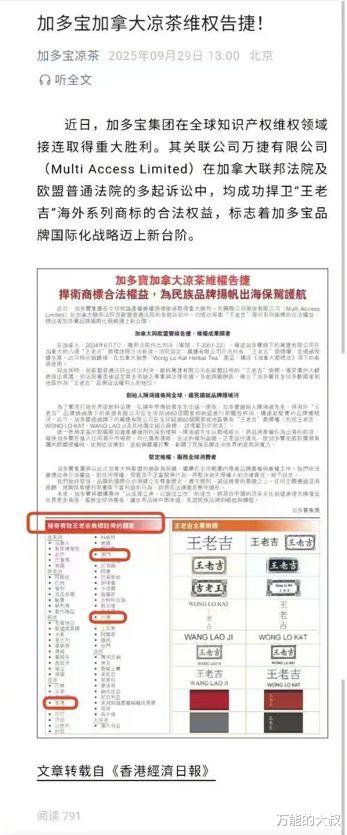 一查,原来是加多宝和王老吉因为“王老吉”的海外商标,又掐起来了。大叔做个解读。
