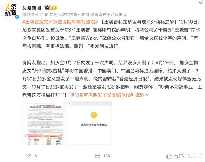 网友1:王老吉一句废话没有,气势直接拉满。 网友2: “有病去医院,有事找法院。”杀伤力拉满。法院见,才是成年人最高级的体面。 网友3:加多宝发个声明却三发三删,明眼人都看得出蹊跷。要么是声明内容经不起推敲,发出去才发现漏洞百出;要么是所谓的"海外商标主张"根本站不住脚,怕被王老吉反将一军。 网友4:笑死,加多宝海外被王老吉按头锤,声明发完秒删,网速都没你手速快~ 王老吉一句“法院已判,全球有效,别蹭”简直自带BGM:该配合你演出的我演视而不见! 网友5:7080后都老了,加多宝王老吉的纷争还没结束…… 网友6:王老吉思路清晰:商标争议没有流量口水战,专注搞事业! ……对着友商,直接开怼,这叫什么危机公关?为什么却能得到网友的支持呢?