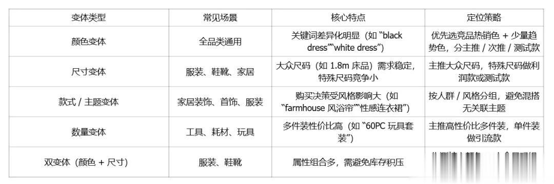 ① 适用场景:自身有竞品没有的变体(如特殊颜色、定制尺寸)。
