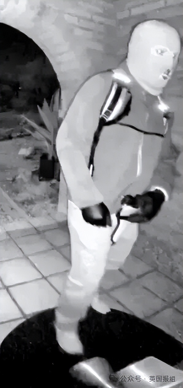 在另一段由警方公布的片段中,该男子还被拍到在门口周围徘徊,低头搜寻地面,动作显得有目的性。