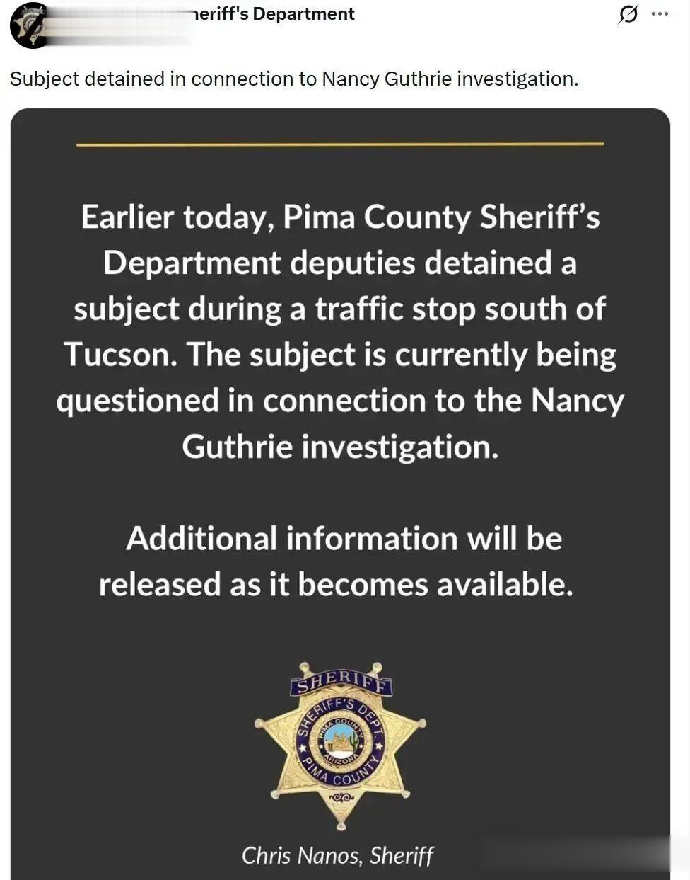 警方表示,这名男子目前正在接受讯问,尚未正式起诉。执法部门没有公开其姓名,但明确强调——此人并非格思里家族成员。