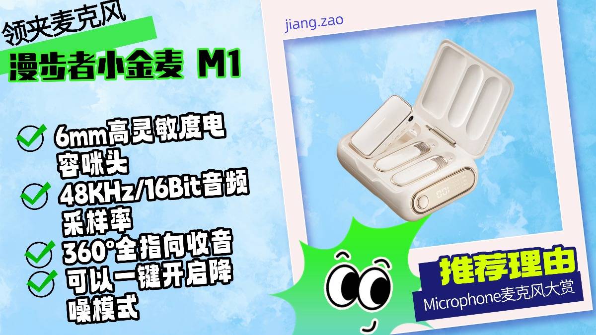 如果想找一款功能实用、操作简单的无线麦克风,可以考虑漫步者这款小金麦 M1。它内置 6mm 高灵敏度电容咪头,360° 全指向收音能各角度等量接收声音,还原清晰人声;48KHz/16Bit 音频采样率,能录制 CD 级无损音质。拥有一键降噪模式,搭配上AI 降噪算法,几乎没有多余环境杂音;而且适配手机、平板、单反等多种设备,即开即连不用复杂操作;搭配充电盒总续航高达 30 小时,还能实时查看电量状态,彻底解决电量焦虑。