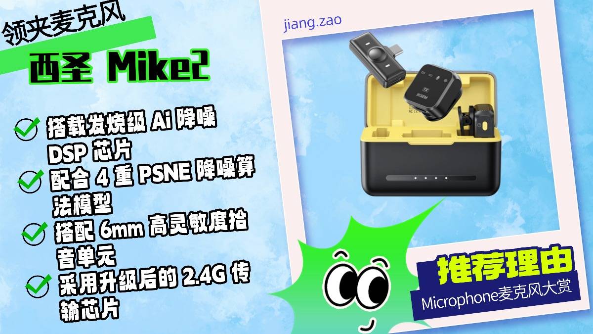 百元价位想闭眼入一款超强降噪的无线领夹麦?那你可以考虑一下西圣 Mike2 这款。它搭载发烧级 Ai 降噪 DSP 芯片,配合 4 重 PSNE 降噪算法模型,能有效过滤街头、商场等嘈杂环境的背景杂音,精准锁定人声 C 位;搭配 6mm 高灵敏度拾音单元,声音清晰度达 98%以上,还原度远超同价位平均水平。