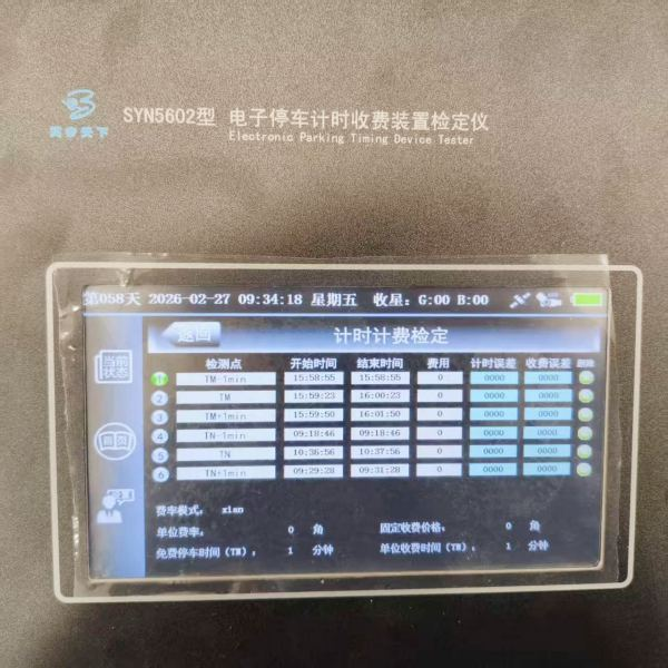 适用场景:检测停车计时收费装置免费停车时长的设置与执行准确性,是民生相关的重要检定项目。操作步骤:在费率设置界面精准设置免费停车时间参数,通过传感器触发被测设备开始计时;检定仪以标准时间为基准,记录被测设备开始计费的实际时间,与设置的免费停车时间对比,计算时间偏差,验证设备是否按照规范执行免费停车计时规则。